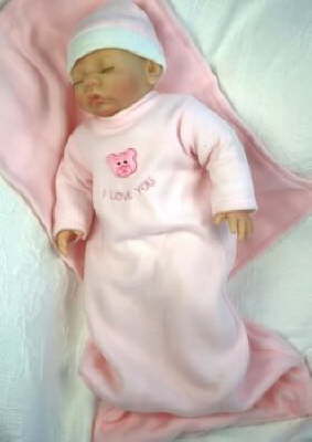 Ich bin Sarah eine 50 cm große Oberndoerfer Spielpuppe. Die Puppe Sarah hat einen hübschen flauschigen Strampler mit einem süssen Teddy darauf, eine schicke warme Mütze, süsse Strümpfchen und eine ganz weiche Decke zum Kuscheln. Mein Kopf, meine Hände und Füße sind aus hochwertigem Softtouchvinyl hergestellt. Mein Körper ist aus weichem Stoff der mit softer Baumwolle gefüttert ist, so dass ich schön kuschelig bin. Preis: Ab 44,50 EUR, inkl. 19 % MwSt. zzgl. Versandkosten